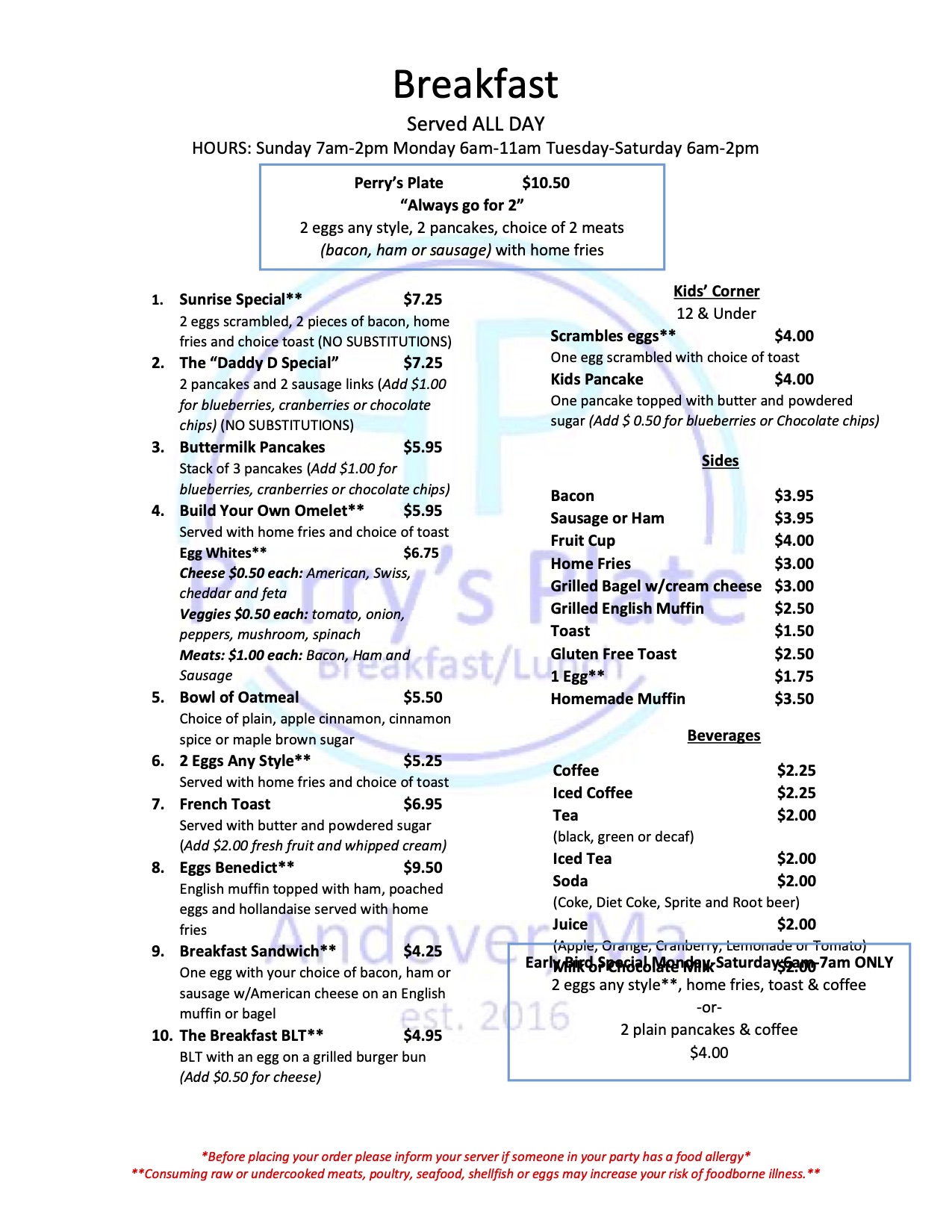 Sunday: 7am - 2pm
